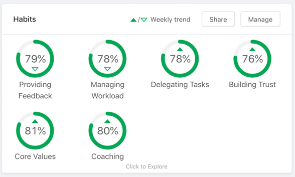 Clicking onto each habit will take you to the deeper dive, where you will see the behavior break down, and an exact change, week over week, in your score percentage.