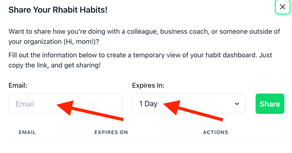 1. Simply Click the share button in the top right corner of the Habits section.